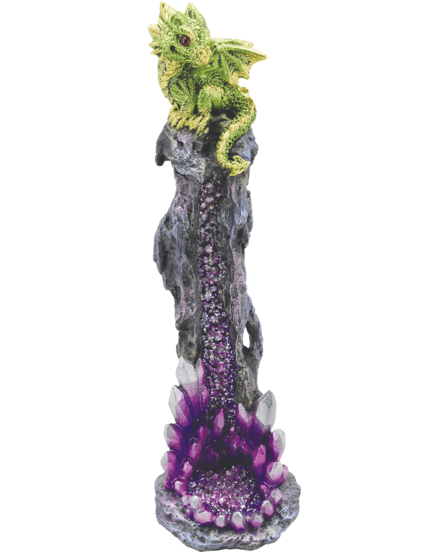 FUIJIMA - UPRIGHT POLYSTONE INCENSE BURNER - BABY GREEN DRAGON DESIGN