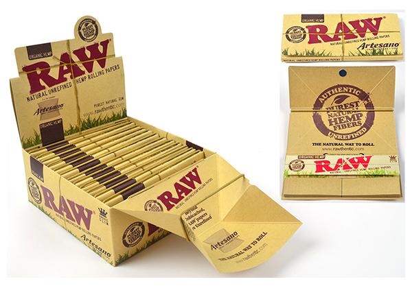 RAW ORGANIC ARTESANO KING SIZE SLIM PAPERS + TIPS + TRAY 32PC/PK 15CT/BX