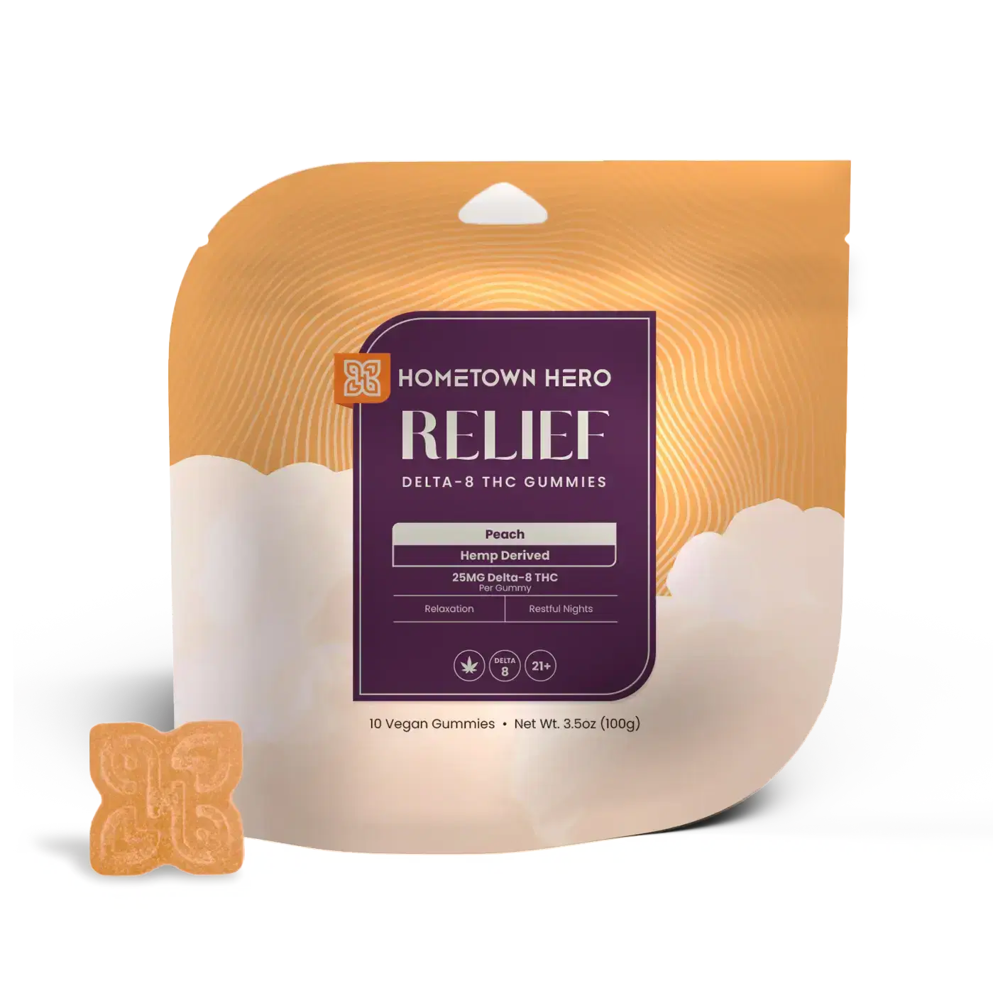 HOMETOWN HERO Relief Delta-9 THC Gummies are crafted for customers seeking powerful, long-lasting relief with consistent results. Each gummy delivers 25MG of hemp-derived Delta-9 THC, offering a strong, effective experience designed to support relaxation, comfort, and stress relief. With 10 gummies per pack, these are ideal for experienced users who want reliable potency in a great-tasting, easy-to-dose form.