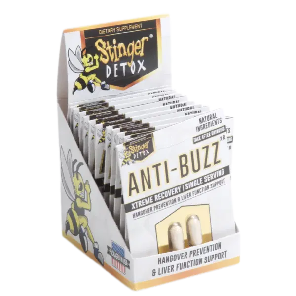 STINGER DETOX ANTI BUZZ HANGOVER PREVENTION CAPSULES 2PK 12CT/BX